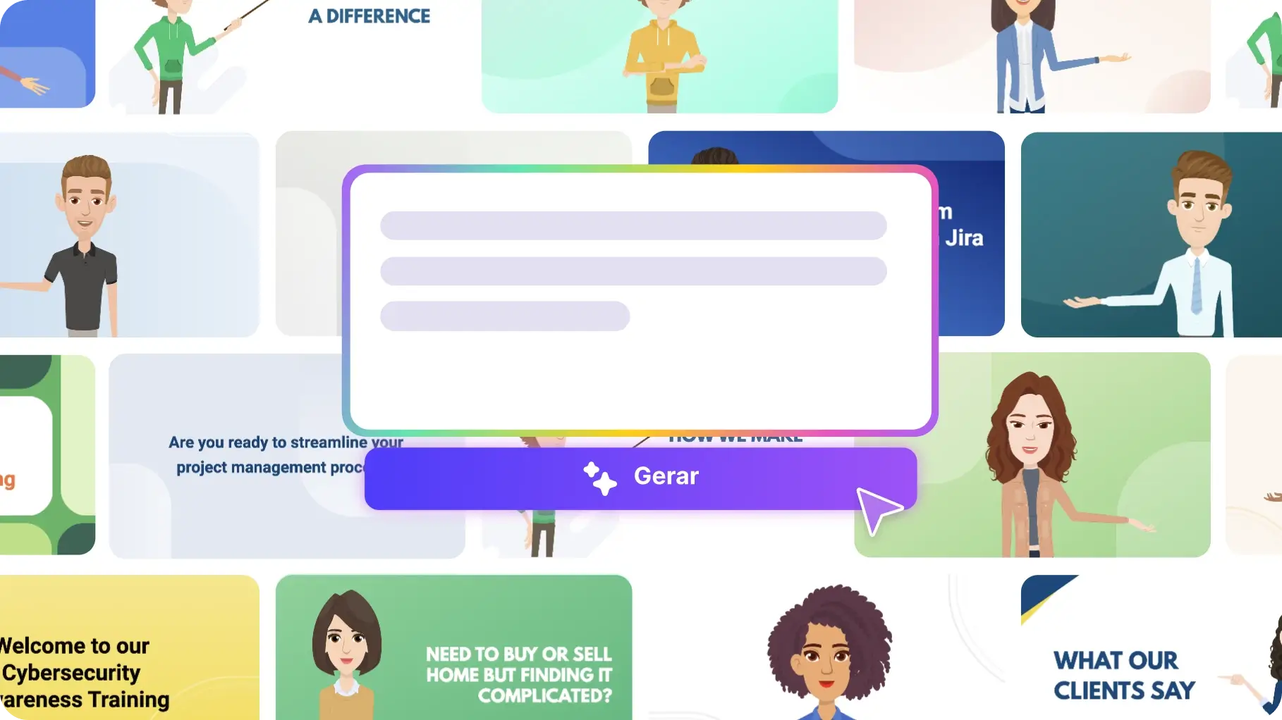 Crie vídeos com qualidade profissional sem esforço, utilizando inteligência artificial a partir de seus textos de prompt, em +de 30 categorias.